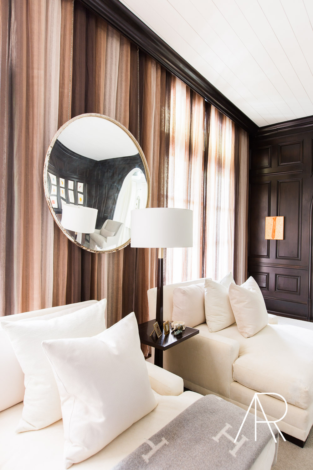Nashville’s glamorous earthiness and musicality has fascinated me of late, and this room only feeds into that. I appreciate how the natural tones of the curtains pick up on the rich wood of the far wall and the small but eye-catching artwork placed therein. And of course, there is that fabulous mirror…