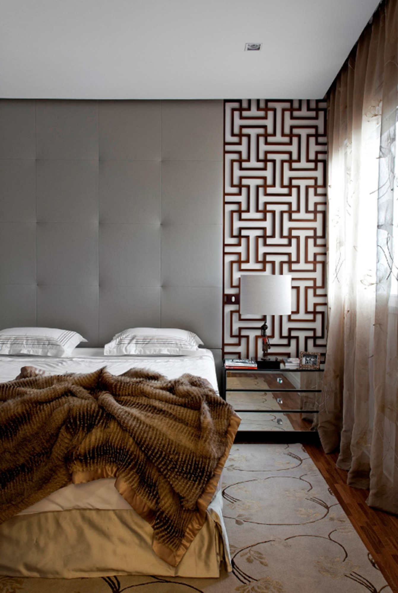 I admire this aesthetic from Rodolphe Parente; clean and expansive at first glance, yet containing a multitude of distinctive accessories, from the Scandinavian-design wooden chair to the graduating tones of grey in the bedcover and pillowcases, to the imposing brass-framed doors. This is a room that I would love to wake up in, preferably with a perfect, strong coffee.