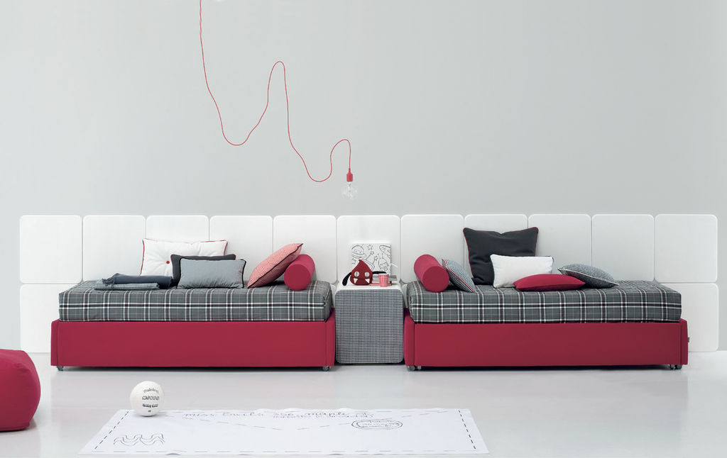 The cord of the light fixture is the focus of this room in berry tones. I imagine two young girls sleeping here, cultivating an understanding that the simplest things can centre things remarkably well.