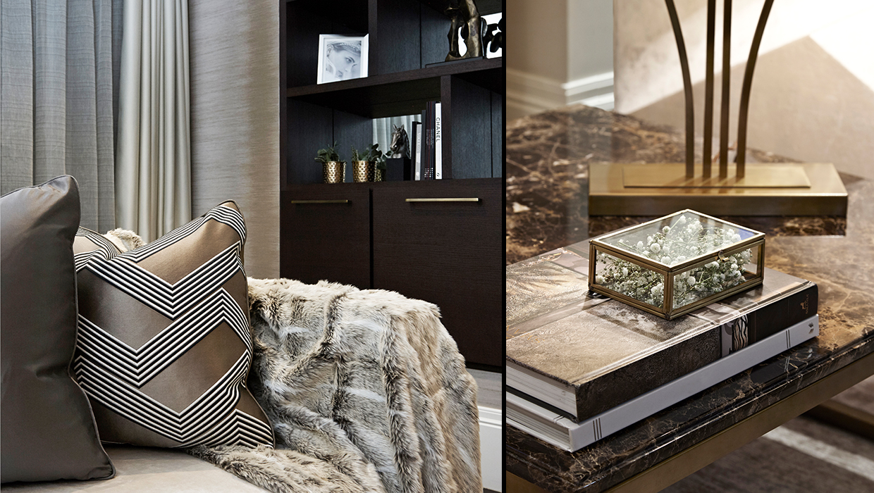 Well-travelled and with a taste for the finest finishes and fabrics, our inspiration came from each family member’s personal tastes and lifestyles, which we reflected in the apartment’s new design. In addition to the FF&E, bespoke pieces such as the fretwork panels and the large brass floor to ceiling door were designed by Bailey to create a unique touch to the apartment.