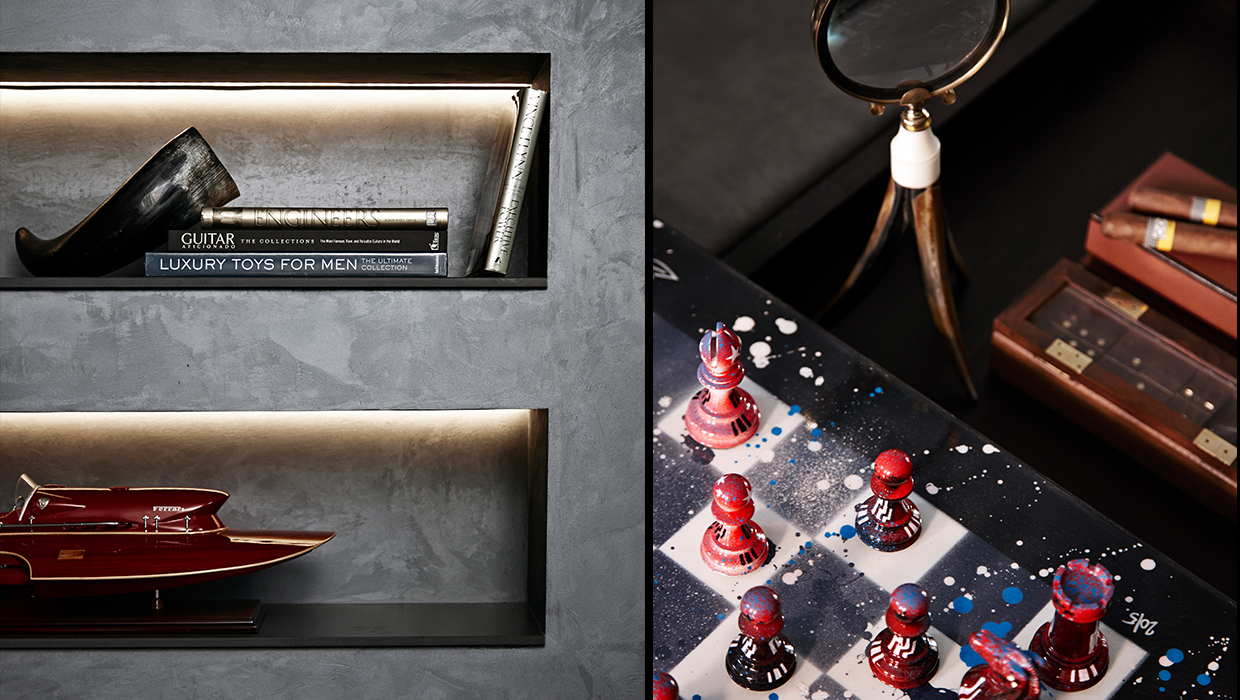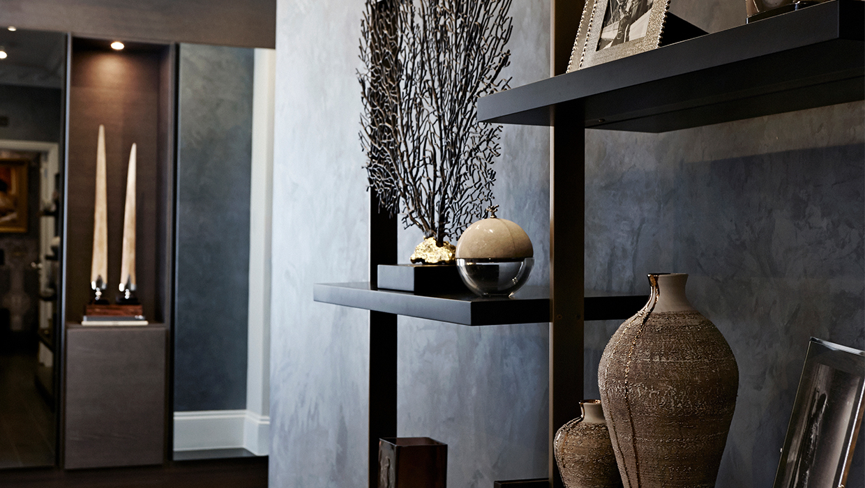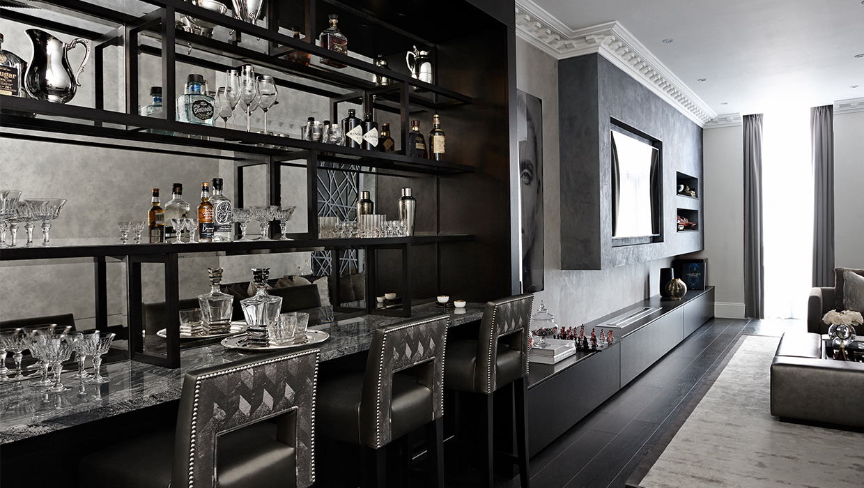Located in the centre of Knightsbridge opposite Harrods, the focus of this two-bedroom bachelor style apartment was on creating a place equipped for the regular entertainment of guests. Whether this was visiting family or London friends, large, open plan spaces were integral. Featuring a muted yet rich colour palette, the emphasis was on antique bronzes, greys and blacks, with finishes inspired by Japanese design found in modernist flourishes, all tied together with an automated lighting scheme.